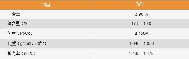 二月桂酸二丁基錫是一種有機錫添加劑,能溶于、、四氯化碳、、氯仿、丙酮、石油醚等有機溶劑和所有工業增塑劑,不溶于水。市面上流 通的高沸點多用途有機錫催化劑二月桂酸二丁基錫通常都是經過特殊液化處理的,常溫下為淺黃色或無色油狀液體,低溫成白色結晶體,可用于聚氯乙烯塑料助劑 ,具有優良的潤滑性、透明、耐候性。耐硫化物污染較好。在軟質透明制品中作穩定劑,在硬質透明制品中作高效潤滑劑,還可用作丙烯酸酯橡膠和羧基橡膠交聯反應、聚氨酯泡沫塑料合成及聚酯合成的催化劑,室溫硫化硅橡膠催化劑